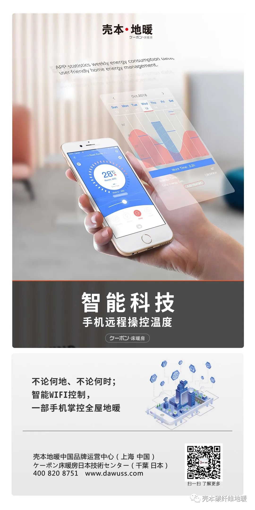 殼本碳纖維電地暖-智能化遠程操控家庭溫度。